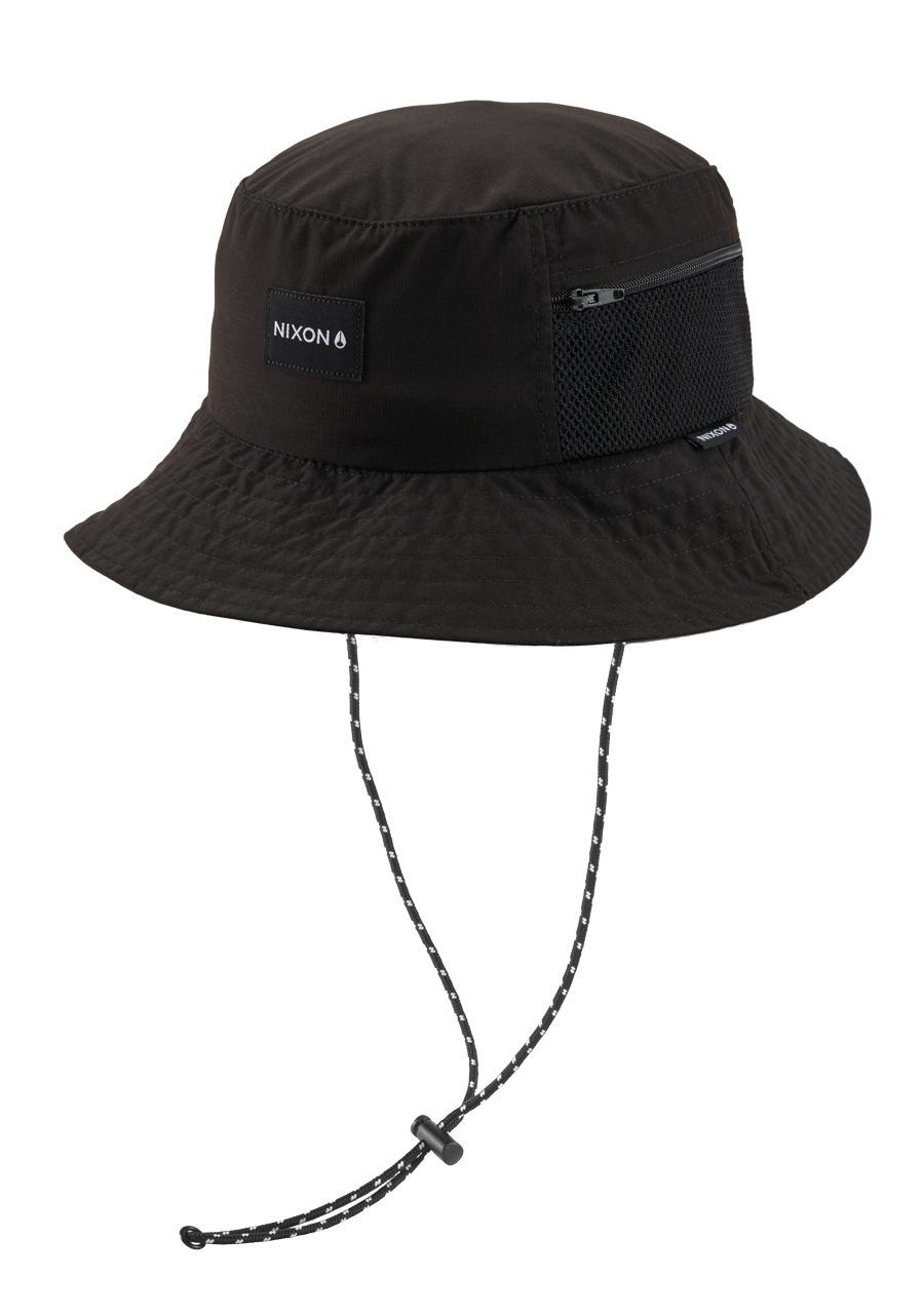 Poche latérale zippée en tissu mesh : Compartiment de rangement interne à l'exterieur du chapeau.