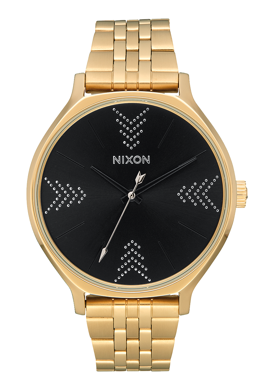 Aiguilles moulées sur mesure, y compris une trotteuse en forme de flèche. Index imprimés et traitement soleillé sur le cadran.