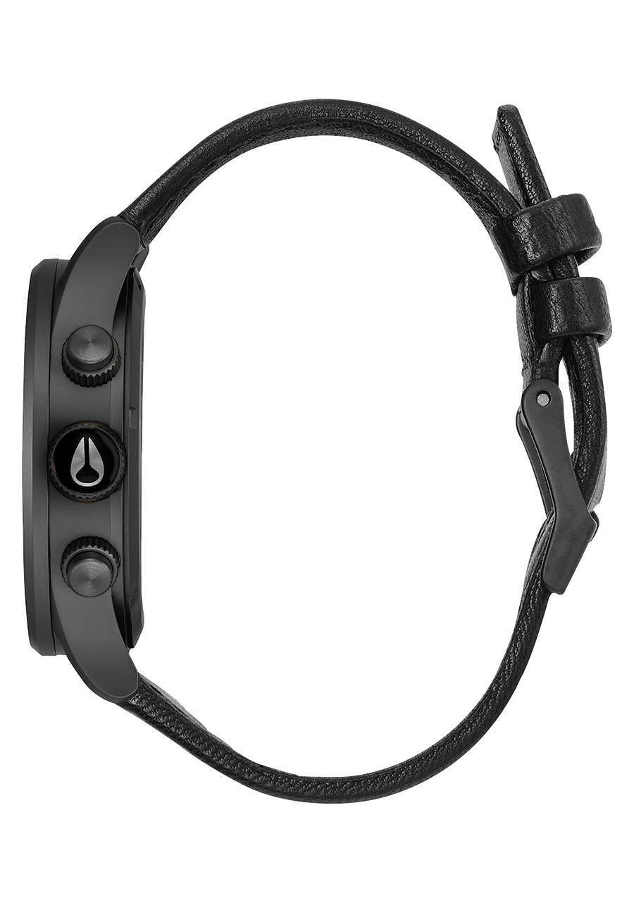 Boîtier personnalisé en acier inoxydable massif de 42 mm et lunette fixe avec une étanchéité de 100 mètres / 10 ATM. Équipé d'un verre minéral durci, d'une couronne en acier inoxydable à triple joint avec remplissage en émail, de poussoirs en acier inoxydable à double joint, d'un fond de boîtier vissé en acier inoxydable et de cornes à goupille ressort.